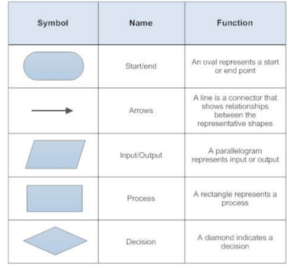 Decision: A diamond flowchart shape indicates a branch in the process flow, decisions that must be made.